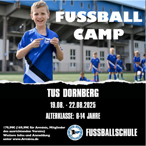In der letzten Woche der Sommerferien, vom 19. – 22.August findet in Dornberg ein Fußballcamp der ARMINIA -Fußballschule statt.